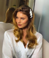 Pente prateado com flores em porcelana moldadas e pintadas à mão, mini pérolas e cristais.